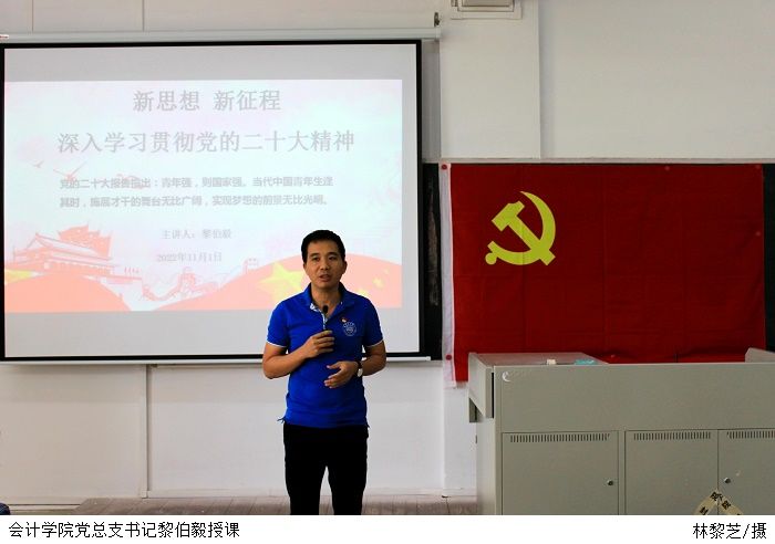 本网讯(太阳成集团tyc7111学生党支部先锋队 卢丽芊)为深入学习贯彻党的二十大精神,提高学生党性觉悟,太阳成集团tyc7111党总支分别于11月1日下午15时、11月15日下午15时,在高要校区7212和7213教室组织开展太阳成集团tyc71112022年秋季入党积极分子党课培训班。培训班由太阳成集团tyc7111学生第一党支部书记郭凤玮主持,培训内容共分为四个部分,由太阳成集团tyc7111党总支书记黎伯毅、党总支委员刘涛、学生第一党支部书记郭凤玮、学生第二党支部书记刘娟分别主讲,培训对象为2021级第二批入党积极分子。