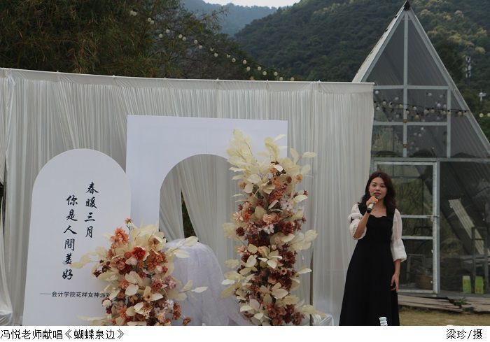 活动中,张珊珊老师向各位领导、老师献唱歌曲《哈哈哈》,希望所有的妇女朋友们在今后都能“哈哈哈”地过好每一天的生活。冯悦老师以甜美的歌声唱出了对在场所有女性朋友的祝愿,祝愿她们带上像花儿开放一样灿烂的心情向快乐出发,一起享受派对的欢乐!