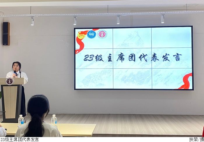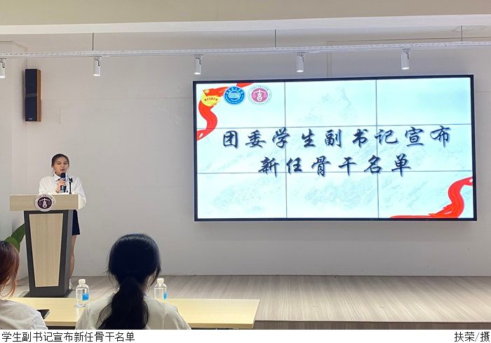 大会在庄严的《国歌》、《团歌》中拉开了序幕。游越越书记致开场词,她代表学院对大会的召开表示热烈祝贺并希望同学们可以继续秉持着服务同学的思想,不断创新工作思路和方法,提升工作质量和效率,力求每一次的活动都能让大家收获满满。随后,学生副书记蔡梓鸿对本学期团委、学生会的工作进行总结。游书记为22级部门骨干颁发聘书并合影留念,并为本学期的优秀部门、优秀学生骨干及优秀工作人员进行表彰。第十六届学生副书记彭麟芳宣布新任部门骨干名单。23级主席团成员谢梓仪代表新任骨干发言。