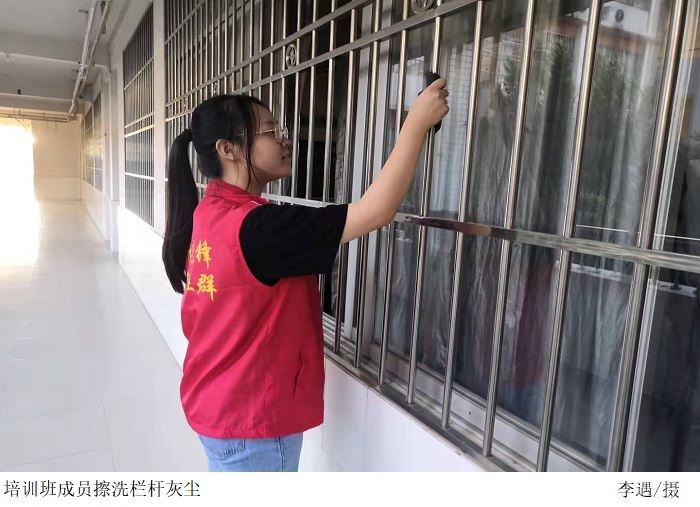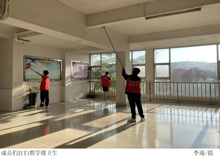 本次党校实践学习活动打扫区域包括七栋教学楼的所有课室、窗台、护栏。党校培训班成员分工合作,秉持认真仔细的工作态度,仔细地清理卫生死角,清除占道杂物,擦洗窗台以及栏杆上的灰尘,对教学区域进行清扫。