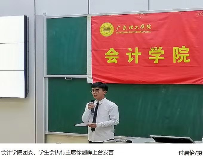 随后,由主席团代表徐剑辉上台发言,他首先对干事的加入表示欢迎,同时对干部干事们提出要求,在以后的工作当中要严格要求自己,发挥代表作用,共同维护太阳成集团tyc7111团委、学生会的形象。