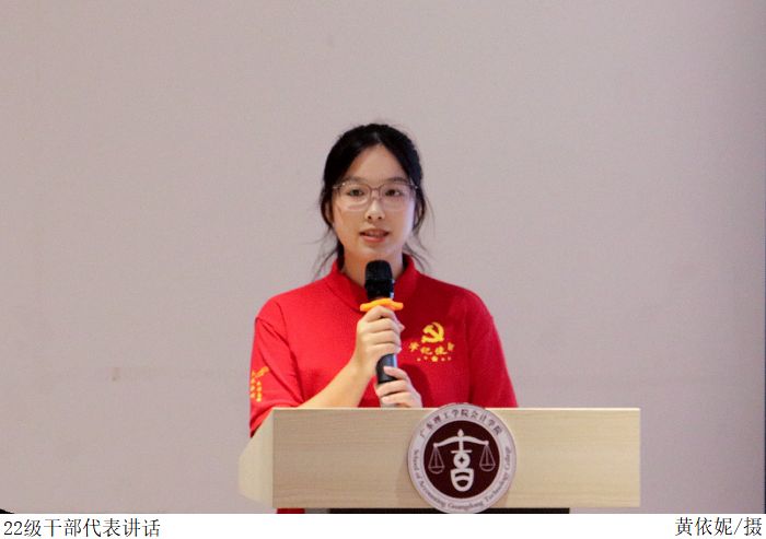 会议伊始,21级干部代表对本学年任职期间的工作作出总结,他们表示过去一年的工作成果离不开每一位干部的辛勤付出,同时对下一届任职干部给予寄望,希望22级的干部们能够在今后的工作中做到“踏实和落实”,有所收获,有所成长。随后,22级干部代表作出总结汇报,他们表示在过去的工作中有心酸、有汗水,但更多的是收获的喜悦,并郑重承诺,将继续发扬务实进取的作风,凝心聚力、勇担重任,为学院的发展贡献力量。大会最后隆重举行了聘书颁发仪式。至此,换届会议圆满结束。
