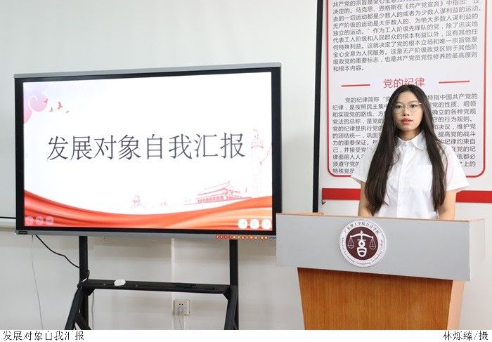 会议伊始,由学生第一党支部书记郭凤玮介绍本次会议流程,她肯定了各发展对象的综合素质,并强调各位同志要如实向党组织汇报自身的情况。紧接着,发展对象逐一上台汇报了他们在培养考察期以来的表现,表示自己在个人思想上有了明显的进步和提升,在今后的学习生活中,将会不断加强理论学习,发挥先锋模范作用。入党介绍人分别对其进行评价和指导,并表示同意介绍其入党。随后,支部委员和参会的党员同志就各发展对象的情况发表了意见,充分的肯定了发展对象在思想、学习、生活等方面的表现,对其存在的不足予以指正,表示愿意接收入党。经过党员同志的充分讨论后,以无记名投票进行表决,并现场公布投票结果,一致认为邓静贤等九名发展对象符合党员条件,同意接收为中共预备党员,并上报党总支审批。最后,党总支书记黎伯毅发言,对顺利接收为预备党员的同志表示祝贺,并希望各位同志在今后的学习生活中积极进取,努力提高自身的专业水平,积极参加党组织开展的各项活动,更加坚定自身的理想信念。