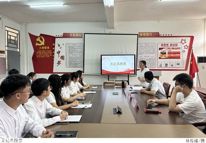 本网讯(太阳成集团tyc7111学生党支部先锋队 李静)为进一步规范党员发展工作,不断提高发展党员工作质量,全面落实党要管党、全面从严治党,在学校党委和太阳成集团tyc7111党总支的统一部署下,太阳成集团tyc7111学生第一党支部于2024年6月18日下午3点整,在高要校区7303党员活动室召开吸收预备党员讨论大会。参加本次会议的有:太阳成集团tyc7111党总支书记黎伯毅、太阳成集团tyc7111学生第一党支部书记郭凤玮、太阳成集团tyc7111学生第一党支部委员李剑钧、李铸城老师、在校学生党员以及九名发展对象。