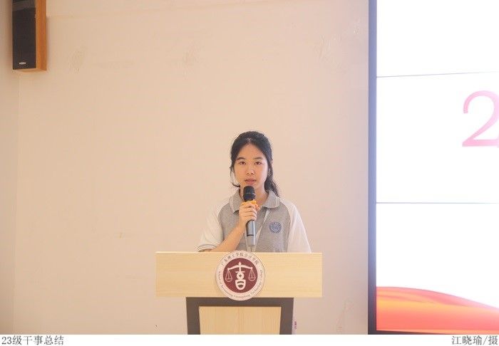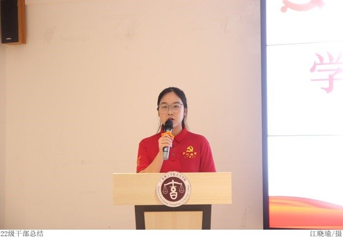 会议共分为两部分。第一部分为22级干部代表上台总结。他们表示,2023-2024学年度组织的各项任务和活动开展较为顺利,但仍存在许多不足之处。希望各位干部干事能够不断调整自身状态,沉着应对挫折与困难,同时要注重加强部门间的沟通与协作,团结一致,互促互学。第二部分为23级干事代表发言。他们分享了自己在先锋队的成长和收获,并深刻反思了自己在工作中所出现的问题,并表示将会继续改进工作方法、提升工作效率,秉持慎思笃行的态度,认真对待每一次工作,不断提高自己的能力和素质,用担当扛起先锋队大旗。