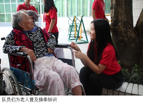 活动开始,先锋队的干事们为老人们排好座椅,搀扶他们到活动场地与他们聊天,普及秋冬换季知识,并为他们分发物资。随后,干事们纷纷献上自己的歌声,希望给老人们献上最真挚的祝福。一件件过冬物资,一句句诚挚祝福,一首“强军战歌”更是把活动气氛推向高潮。