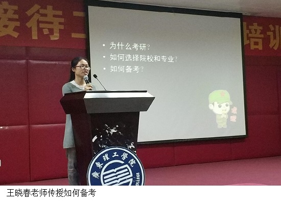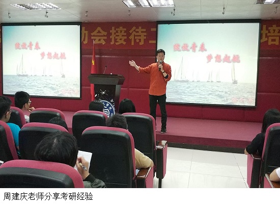 会计系的王晓春、周建庆两位老师为大家传授考研经验。两位老师就“为什么考研”“如何选择院校和专业”“如何备考”三方面为大家进行讲解。随着社会的进步、文化程度的提高,本科生市场供大于求,就业压力大,考研可以增强我们的就业竞争力。通过考研我们能提升自我,对知识和内涵进行深化;王老师为同学做出定位分析,推荐实用网站,教导同学如何备考。随后周老师以幽默的演讲方式带动气氛,教导同学树立自信,否定空想,劝导同学真正的干起来;以理性的态度看待考研,让同学们抓住机会,把握机遇。并建议同学们现如今应做好规划,做好长期作战的准备。
