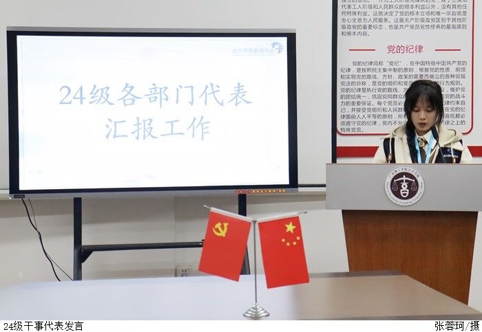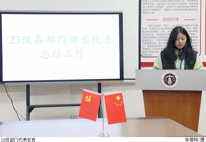 会议伊始,24级干事代表发言,他们分享加入新闻中心以来的成长与收获,反思工作不足之处,表示将吸取经验教训,不断提升专业能力。随后,23级部门代表上台发言,他们详细阐述本学期部门工作的成果,并指出存在的问题和改进的方向,表示未来将高标准、高质量、高效率完成工作。紧接着,22级负责人发言,她对新闻中心的工作进行全面的回顾和总结,强调团队协作和创新发展的重要性,并对未来的工作提出更高的期望和要求。最后,新闻中心指导老师刘涛发言,他充分肯定新闻中心本学期的工作成果,对全体成员的付出表示感谢,并对新闻中心的未来发展作出展望,强调要持续提高新闻稿的时效性以及推文创新性,不断优化工作流程,提高工作效率以及成品质量,希望新闻中心全体成员能齐心协力,共绘未来新篇章。