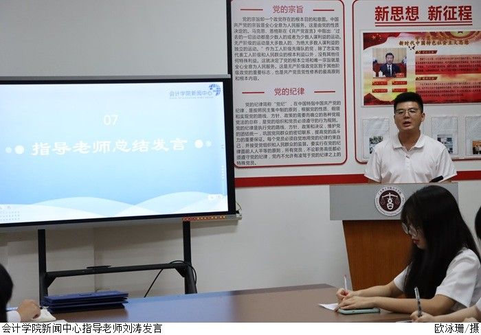 最后,刘涛进行总结发言。他强调,新闻中心是学院重要的宣传阵地,肩负着传递学院声音、展示学院形象的重要使命。他希望新一届成员能够虚心学习,不断提升自身的专业能力和综合素质,在工作中保持严谨认真的态度,让学院的新闻宣传工作迈向新高度。