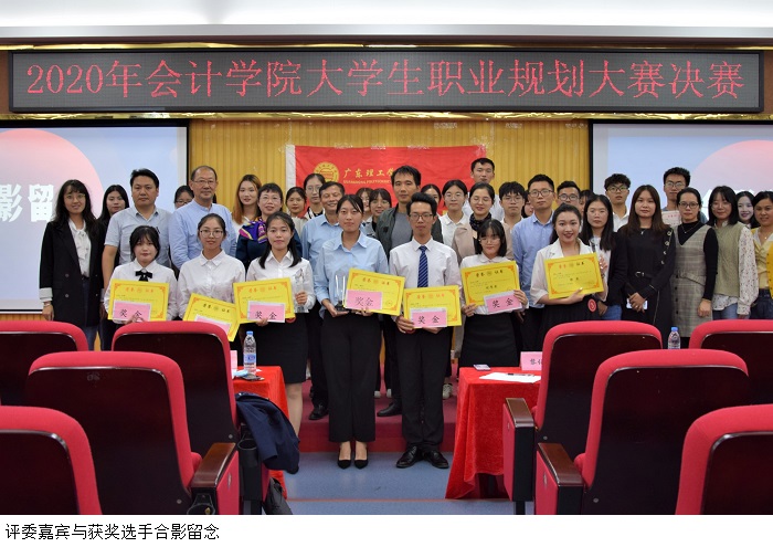 整个比赛过程紧张有序进行,7名选手分别以演讲、评委提问以及情景模拟三个环节,生动展示了自己的职业理想和规划。各位选手的职业生涯规划书内容新颖、规划合理、结构完整,演讲过程富有感染力。评委就其规划方向、国家相关政策扶持、社会实践等方面给予了选手建议和思考空间。最终,获得本次大赛优秀奖的有:19级财务管理2班刘洁仪同学、19级会计学10班房泰森同学、19级会计学4班陈文婷同学、19级会计学13班贺苑玲同学,获得铜奖的是19级财务管理5班陈俏婷同学,获得银奖的是20级财务管理2班罗奥升同学,获得金奖的是20级会计学11班弓婕莹同学。获得优秀指导老师的有:郭凤玮老师、刘娟老师、曾景瑜老师。