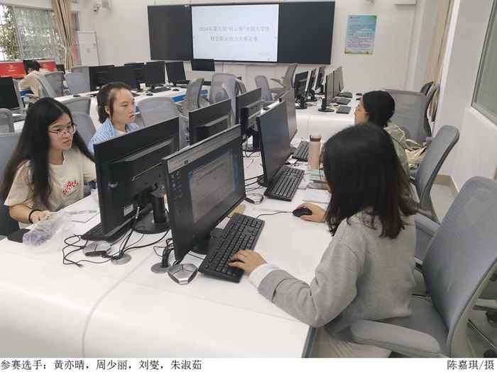 此次大赛采用团队赛形式,我院两支参赛队伍分别为盛洁、龙凤好老师指导的陈嘉琪、林佳瑶、孙铭俐、罗颖灵团队,以及郑春晓、张可老师指导的黄亦晴、周少丽、刘燮、朱淑茹团队。大赛由“业财税信息处理技能”竞赛环节和“智能化财务应用技能”竞赛环节组成。在“业财税信息处理技能”竞赛环节中,选手通过扮演会计主管、出纳、成本会计、总账会计4个财务岗位,模拟实务逼真的工作系统环境和完整的财务工作业务链条。在“智能化财务应用技能”竞赛环节中,通过财务机器人、 BI 工具以及 Python 的应用,考察各团队的智能记账处理、数据采集与可视化应用及财务决策的综合能力。