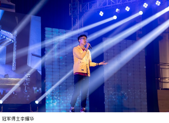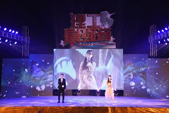 首先,全体决赛竞演选手和大学生舞蹈团带来的《抖音神曲秀》开场表演,掀起了全场观众的热情。此次赛制实行三轮淘汰制,在第一轮比赛中,十位唱将分成五组,两两对唱,每位选手都各展才华、演绎飞扬青春。3号牛辰宇和5号廖秋苹两位用动听的歌声和动情的互动为观众带来了一首《平凡之路》,使比赛渐入佳境,现场的观众挥动手中的荧光棒,一同加入了这一场视听盛宴。在一番精彩的角逐下,7号姚洁悦、3号牛辰宇、4号张家铭、6号李耀华、5号廖秋苹脱颖而出共同进入二轮比赛中,五强选手用自己深情的方式诠释了他们对音乐的态度。4号张家铭的一首《暗香》唱出了他非凡的实力,动情的演唱博得了现场激烈的掌声。在激烈的竞争中,由16级许奕英师兄返场献唱《I lived》,暖和了现场紧张且刺激的氛围。