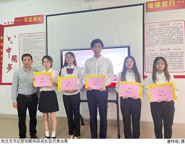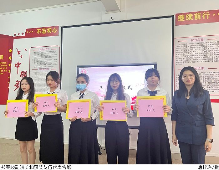 郑春晓宣读本次竞赛的获奖名单,并与黎伯毅共同为获奖团队学生代表颁发荣誉证书,随后进行了合影留念。