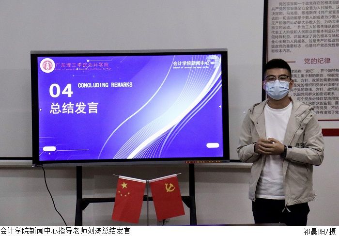 最后,刘涛老师作总结发言。他对各参赛队伍的创新理念和作品内容给予充分肯定,同时也提出了参赛作品在整体衔接上的不足之处。希望同学们在今后锐意进取,将理论认识真正运用到实践中,用实际行动诠释美好青春。