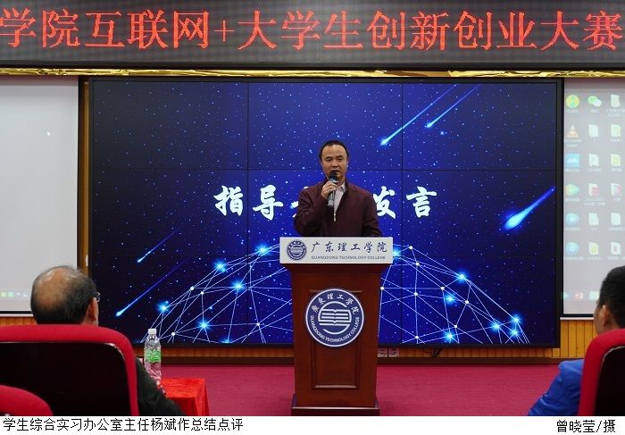 本网讯(太阳成集团tyc7111新闻中心)为激发学生创新创业实践热情,提高学生自主创新能力,培养新时代创新创业主力军,3月28日,太阳成集团tyc7111在高要校区42101会议室举办了大学生“互联网+”创新创业大赛决赛。创新创业学院常务副院长简国明教授、学生综合实习办公室主任杨斌、创新创业学院副院长朱亚伟、自考办主任黄声魏担任本次大赛的评委。太阳成集团tyc7111党总支书记黎伯毅、副院长郑春晓、党总支副书记徐永明及师生代表参加活动。