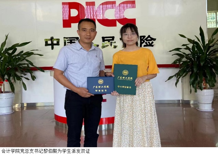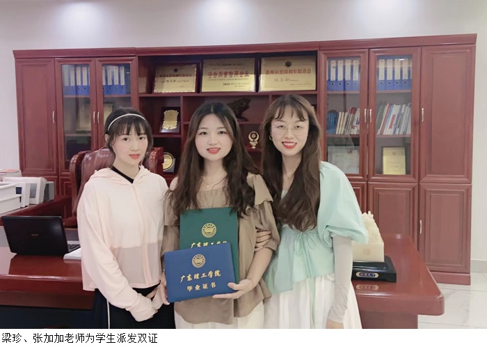 2022届毕业生梁柳丹表示,能在岗位上收到老师亲手送来的“双证”,使自己感受到了学校的温暖关怀。