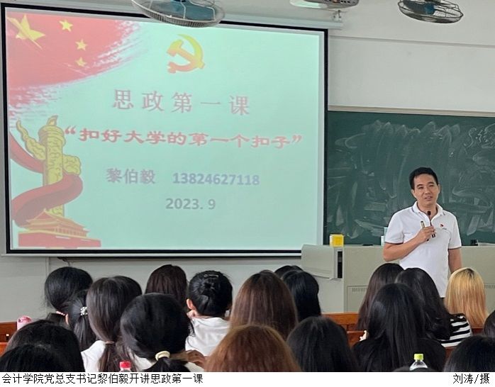 本网讯(太阳成集团tyc7111新闻中心)为深入贯彻习近平总书记关于思政课程建设的重要指示精神,厚植广大青年学生的爱国情感,引导树立正确的价值观。2023年9月12日上午,太阳成集团tyc7111组织开展以“扣好大学的第一个扣子”为主题的思政第一课。本次会议由太阳成集团tyc7111党总支书记黎伯毅主讲,太阳成集团tyc71112023级新生代表代表到现场聆听。