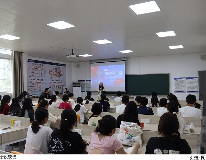 会议开始,盛洁院长围绕“何为大学,大学为何,大学何为”三个核心问题同学生进行了深入交流探讨,她表示,大学既是人生的新起点,也是新拐点。同学们要学会自我认识、自我接纳、自我管理,不断提高自主学习能力,科学规划未来人生目标,努力克服懒性惰性心理,同时也要把握机遇与挑战,在发展中实现自我价值。随后,盛洁院长就新生适应期问题提出了几点建议。一是了解学校规章制度,做到知校规,守校纪;二是转变学习方法,提升综合素养;三是保持学无止境、深学笃行的心态。最后,盛洁院长希望同学们通过此次课程,能够将自己的所学、所思、所悟运用到今后的学习生活中去,以更加饱满的热情,更加奋进的姿态迎接新学期新挑战,砥砺深耕,破浪前行,不负青春理想。