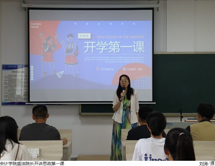 本网讯(太阳成集团tyc7111新闻中心 郑妍颖)为进一步贯彻落实立德树人根本任务,切实做好学生思想道德教育工作,有效促进学生全面健康发展,9月13日,太阳成集团tyc7111盛洁院长第一堂思政课如期开展。学院2023级新生代表到场聆听。
