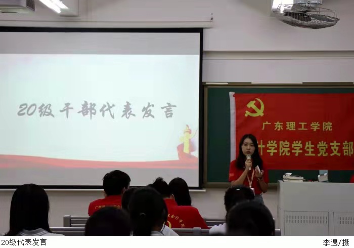 会上,20级的干部代表首先对新加入的先锋队新血液表示祝贺与欢迎,希望新干事们能够早日融入先锋队的大家庭,在日常工作中以严谨的态度要求自己,端正言行举止、注重平衡学习与工作的时间,不忘初心,方得始终。接着,19级负责人刘旭光以及宣传部部长黄诗欣上台讲话,他们表示先锋队是一个严谨的组织,希望干事们能汲取师兄师姐们宝贵的工作经验,始终保持着学习的心态,并清楚认识到先锋队成员身上应该肩负的责任和使命。最后,由21级干事逐个上台进行发言,他们表示在今后的工作中会以高标准来要求自己,认真地完成好组织安排的任务。