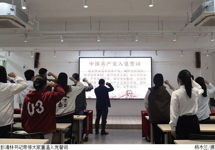 随后,彭清林书记带领党员重温入党誓词并作发言。他对预备党员的成长予以肯定,并勉励大家转正后持续加强理论学习、提升党性修养、践行党的宗旨,在今后的学习工作中担当作为、服务人民。会议最后,太阳成集团tyc7111学生第一党支部书记罗广超进行总结,他先向转正党员致以祝贺,并要求大家牢记党员身份,将党的理论内化于心、外化于行,以担当精神和实际行动践行入党初心,发挥模范带头作用。