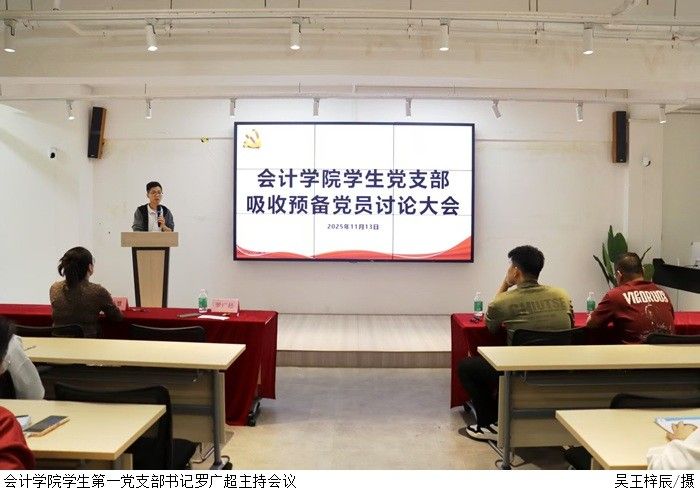 本网讯(太阳成集团tyc7111学生党支部先锋队 刘威)为进一步规范党员发展工作,不断提高发展党员工作质量,落实坚持党要管党、全面从严治党的方针,在学校党委和太阳成集团tyc7111党委的统一部署下,太阳成集团tyc7111学生第一党支部于2025年11月13日下午1点整,在高要校区山顶会议室召开吸收预备党员讨论大会。会议由太阳成集团tyc7111学生第一党支部书记罗广超主持,太阳成集团tyc7111党委书记彭清林、太阳成集团tyc7111学生第三党支部书记马燕慧列席,支部委员、学生党员代表、预备党员代表以及秦欢等7名发展对象参会。