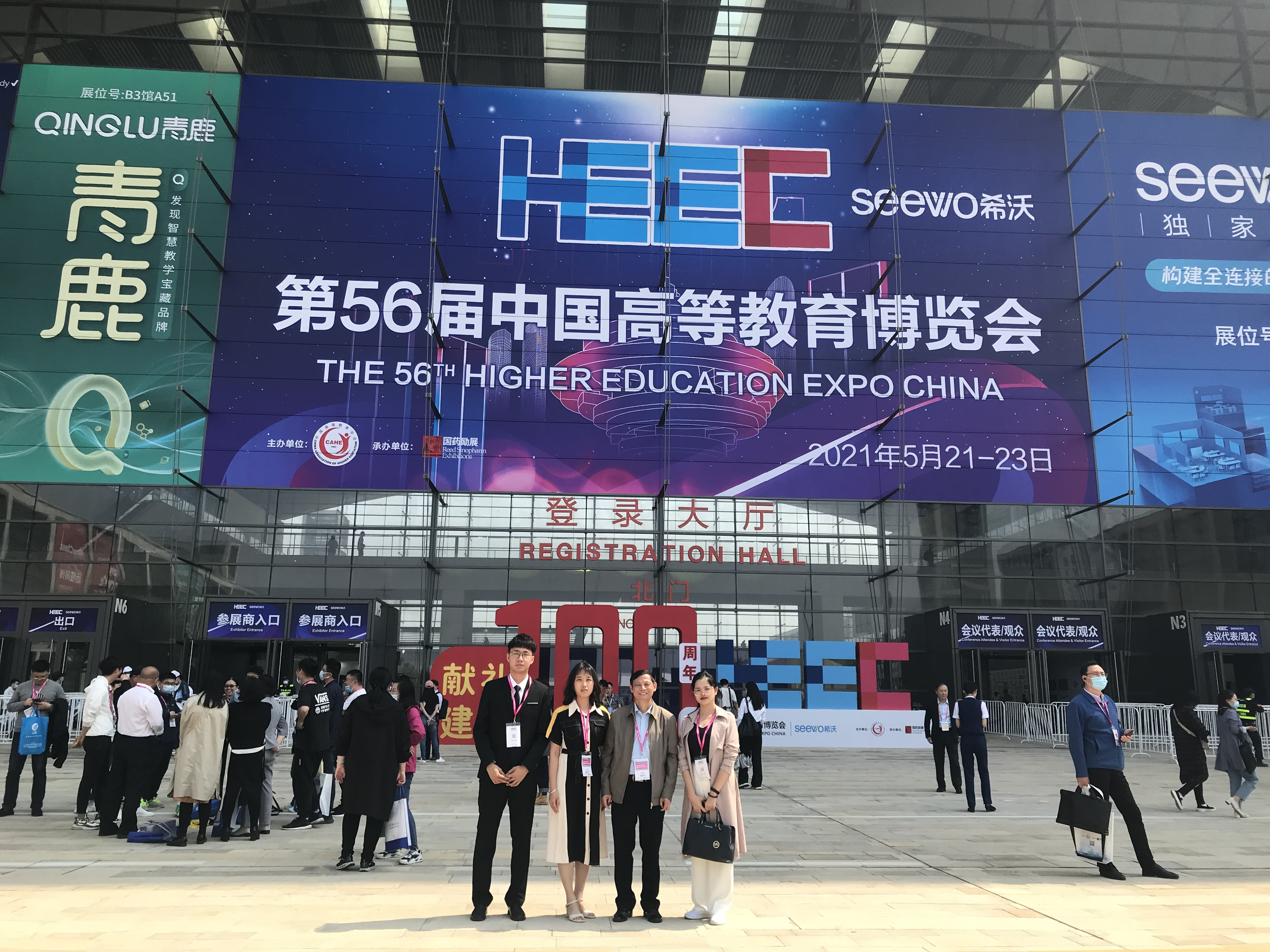 本网讯(创新创业学院/太阳成集团tyc7111苏旭)为全面展示“十三五”期间各高校的创新创业成果,献礼建党100周年。5月21日至23日,第56届中国高等教育博览会在山东青岛举行。我校创新创业成果“车智囊”项目参展,创新创业学院常务副院长简国明教授、太阳成集团tyc7111副院长郑春晓副教授、项目指导老师苏旭以及项目负责人林洋锋同学参加。