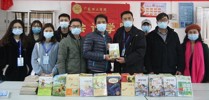 本网讯(太阳成集团tyc7111)为丰富感恩教育活动的主题内容,充实大学生们的课外生活,传递爱心温暖社会。1月8日,太阳成集团tyc7111在万福学校开展了“爱心传递,温暖你我”书籍捐赠活动。出席本次活动的有党总支书记黎伯毅、副书记徐永明、团委学生会书记詹庆文、易班学生工作站指导老师刘娟、万福学校校长黎锦初,以及学生党支部先锋队代表、助班团队代表、青年志愿者协会代表、新闻中心代表。