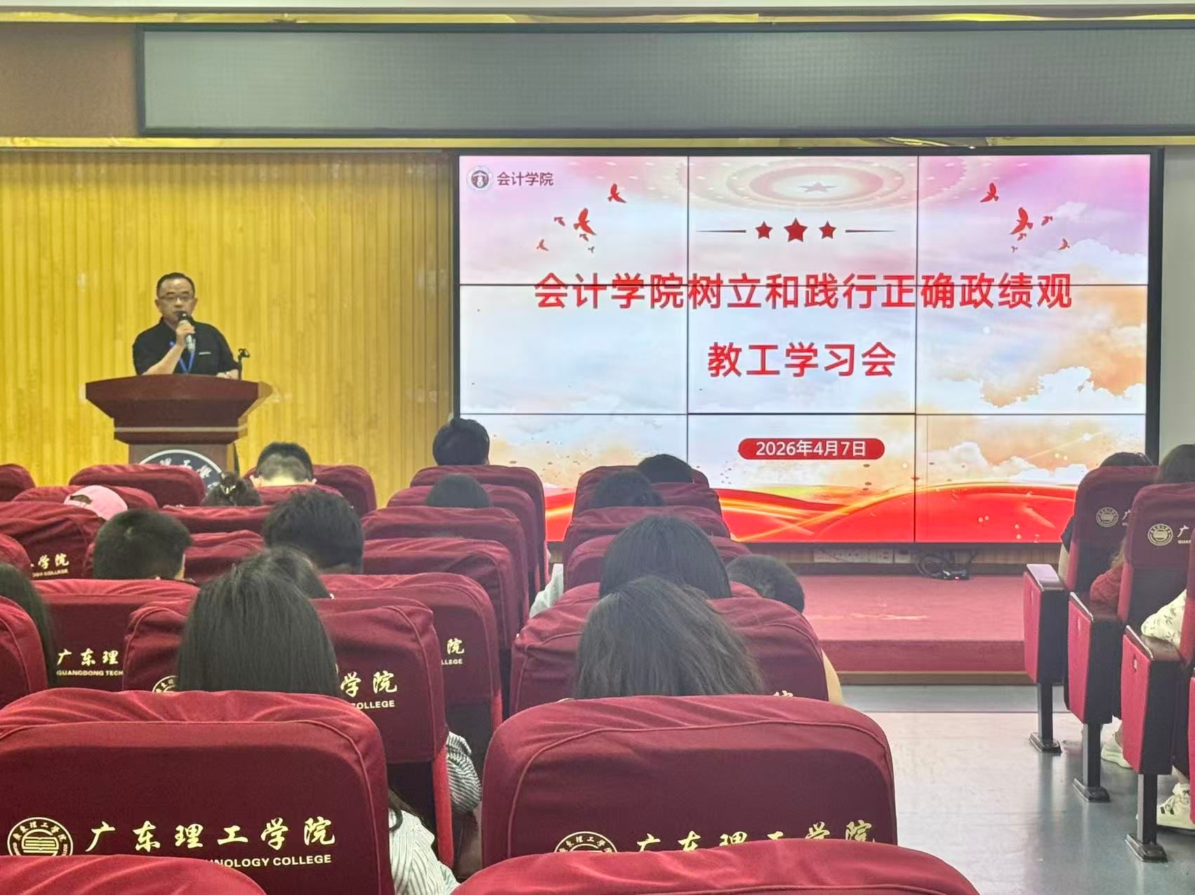 彭书记最后号召全体教职工要以此次学习会为契机,将正确政绩观内化于心、外化于行,以务实态度、扎实作风、真实成效,全力迎接本科教学工作合格评估,为学院及学校高质量长远发展贡献力量。