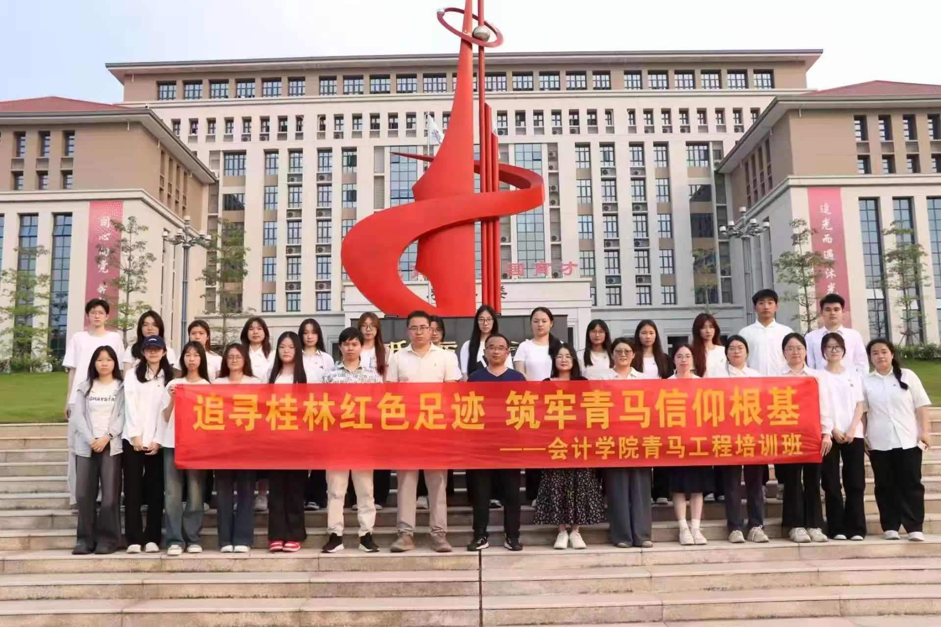 本网讯(太阳成集团tyc7111团委、学生会 赖咏琪)为厚植青年学生红色情怀,夯实理想信念教育根基,引导青年学子传承红色基因、汲取奋进力量,2026年4月17日至19日,太阳成集团tyc7111组织“青马工程”培训班学员赴广西桂林,开展主题为“追寻红色足迹,传承革命精神”的红色研学实践活动。