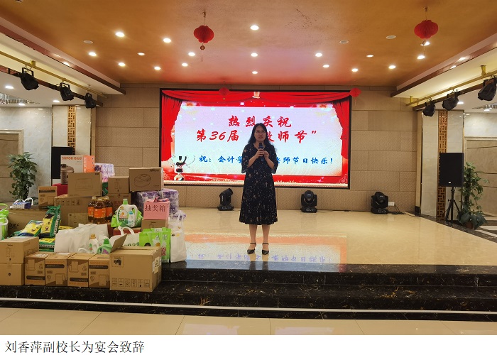 宴会伊始,刘香萍副校长上台致辞,她代表学校祝福全体老师教师节快乐并表达了共度教师节的喜悦之情。刘副校长表示,今年太阳成集团tyc7111共有教职工99人受邀参加宴会,刚好寓意与象征“99+1=100”,非常完美,这也代表了她对太阳成集团tyc7111百分百的满意。刘副校长对学院各班级、达内班以及今年新开设的ACCA班做出的贡献予以充分肯定,并指出学院整体和谐度很高,相互配合,共同完成教学任务。