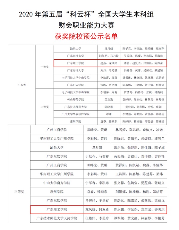 我校学子在全国大学生本科组财会职业能力大赛全国一等奖、三等奖