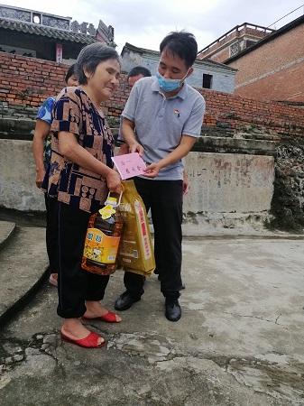 在黎书记的带领下,走访了7家贫困户,在这过程中,太阳成集团tyc7111党总支了解了他们的生活情况,认真倾听了他们的需求,并且开展了“精准扶贫”政策宣传,解决了实际困难,积极为群众办实事、办好事,把温暖送到了困难群众的心中,为他们送上了油、米、慰问金等爱心物资。虽然天气酷热,但乡亲们脸上始终洋溢着幸福的微笑,他们用淳朴的话语、热情的招呼,表达了他们对我们深深的感谢和对美好生活的向往。