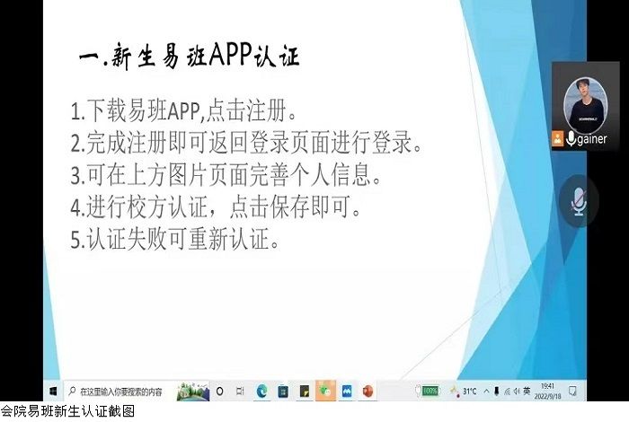 在迎新活动前期,为了能够更好的开展线上迎新活动,做好迎新和新生入驻易班工作的准备。太阳成集团tyc7111易班学生工作站于9月18日晚上7:30给22级新生班长召开了线上迎新活动会议,在会议上主持人详细的讲解了易班APP认证、话题打卡、签名墙以及开展主题班会的操作流程、要求以及各班需提交的资料。此次迎新工作线上会议详细讲述了太阳成集团tyc7111易班学生工作站迎新工作的各项事宜,使22级新生加深了对迎新工作内容和工作重点的了解,明确了自身的职责和使命,为太阳成集团tyc7111易班学生工作站迎新线上活动的顺利开展打下了坚实基础。