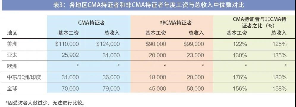 根据IMA协会2021年全球薪酬调查报告显示,CMA持证者的年度总收入中位数比非CMA持证者高出29,000美元(约人民币18.56万元),折合月薪为2583美元(约人民币1.65万元),即高出58%