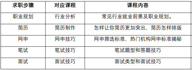 部分职业力发展课程安排
