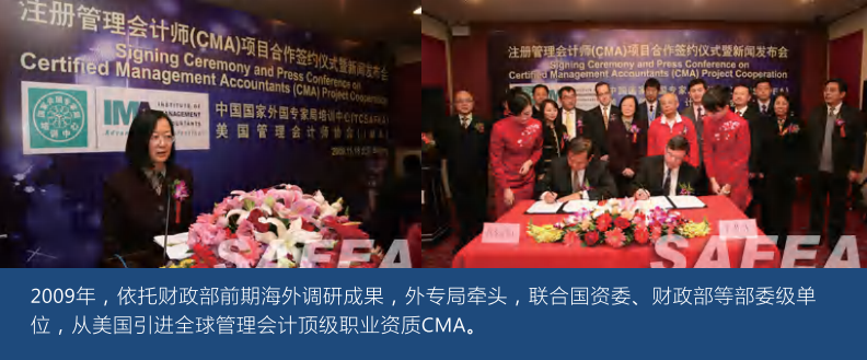 2009国务院下属的国资委、外专局、从美国引进管理会计职业资质CMA以来,财政部已连续多年下发红头文件,倡导落实CMA认证培训工作,上海、南京、泉州等全国8个一线二线省市把CMA 列入高端人才引进计划