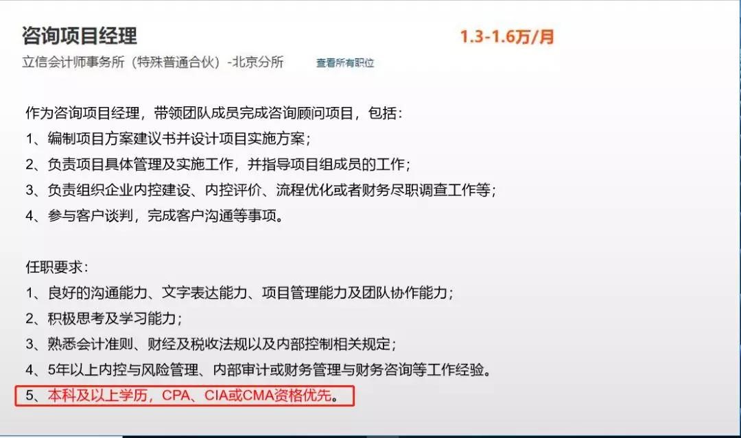 持有CMA证书的学生可以在毕业时获得更多的岗位选择和更高的薪酬回报,职业发展前景广阔,众多企业在招聘时,明确要求拥有CMA资格的候选人优先。