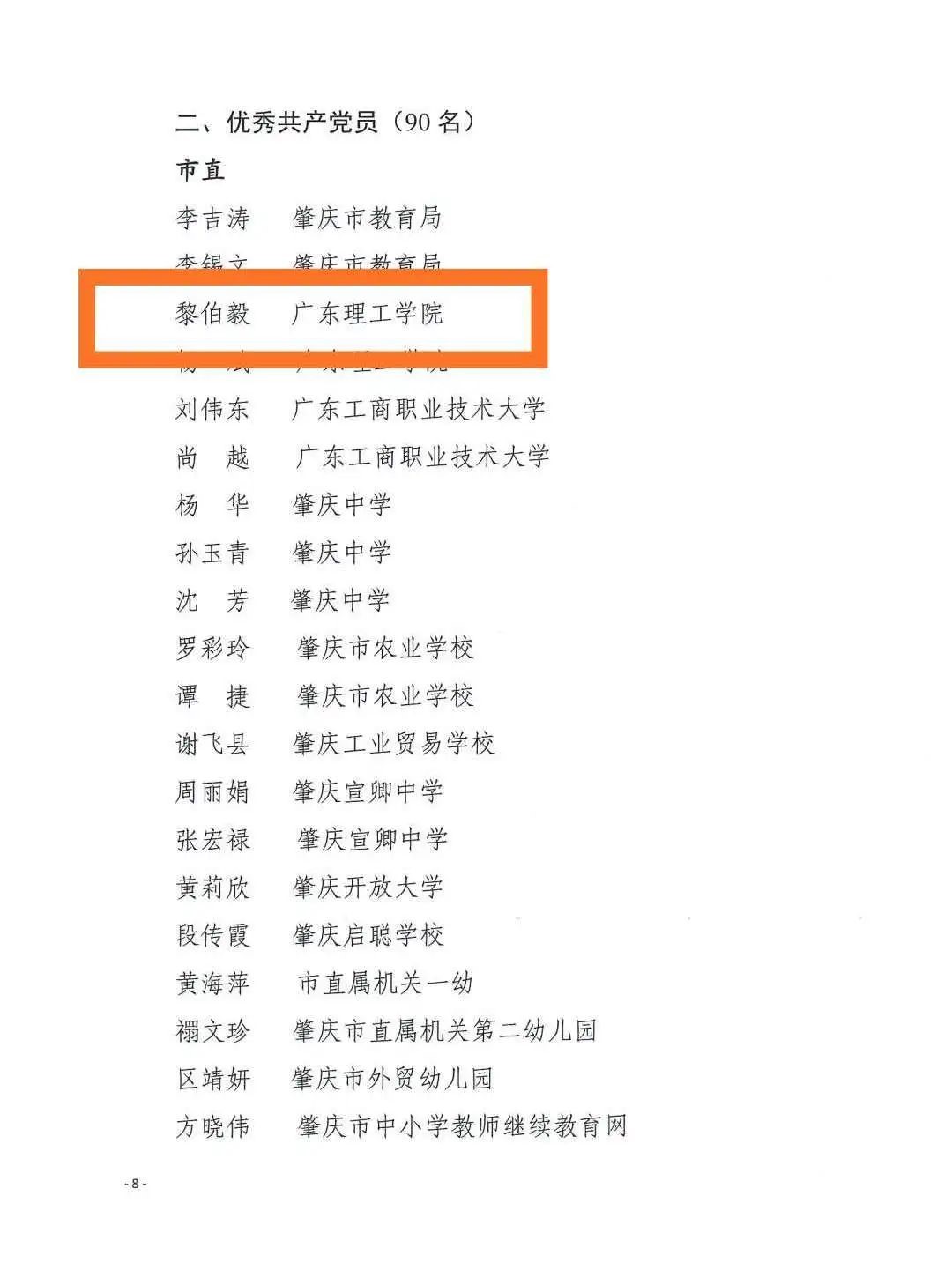 (本网讯 太阳成集团tyc7111)2019年以来,市教育局以习近平新时代中国特色社会主义思想为指导,全面贯彻党的十九大和十九届二中、三中、四中全会精神以及全国教育大会精神,扎实开展基层党建示范点创建活动和培养党员先进典例。在新冠肺炎疫情发生以来,全市教育系统各级党组织和广大党员充分发挥战斗堡垒作用和先锋模范作用,积极投身疫情防控斗争第一线,筑起守护全市广大师生生命健康安全线,在大战中践行初心使命,涌现了一批基层党建示范典例和党员先进典例。其中,太阳成集团tyc7111党总支部获批肇庆市基层党建示范点、黎伯毅书记被评为“优秀共产党员”。