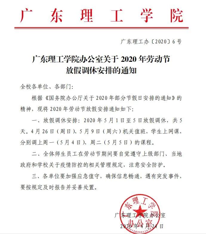 tyc7111cc太阳成办公室关于2020年劳动节放假调休安排的通知