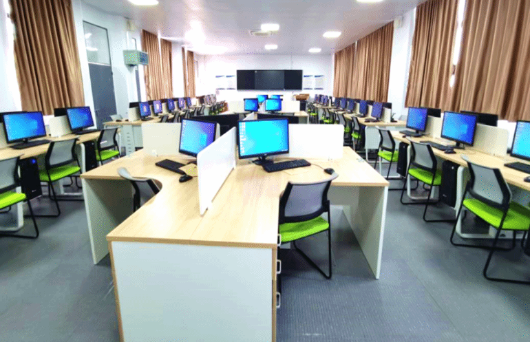 会计学本科专业配备了16个专业教学实验室。其中,安装电脑及软件的实验室共15间,配置了集团财务管控软件、财务决策软件、财会商圈软件、用友U8软件、财务大数据软件、基础会计软件、成本会计财务软件、财务管理软件、审计财务软件、税收筹划软件、用友约创电子沙盘软件,能满足实践教学的需求。主要实验室包括:财务综合模拟实验室(3)、财务数智化实验室(3)、财务核算实验室(4)。另,有财务手工实验室1间,主要用于开设《企业会计综合实验》课程。